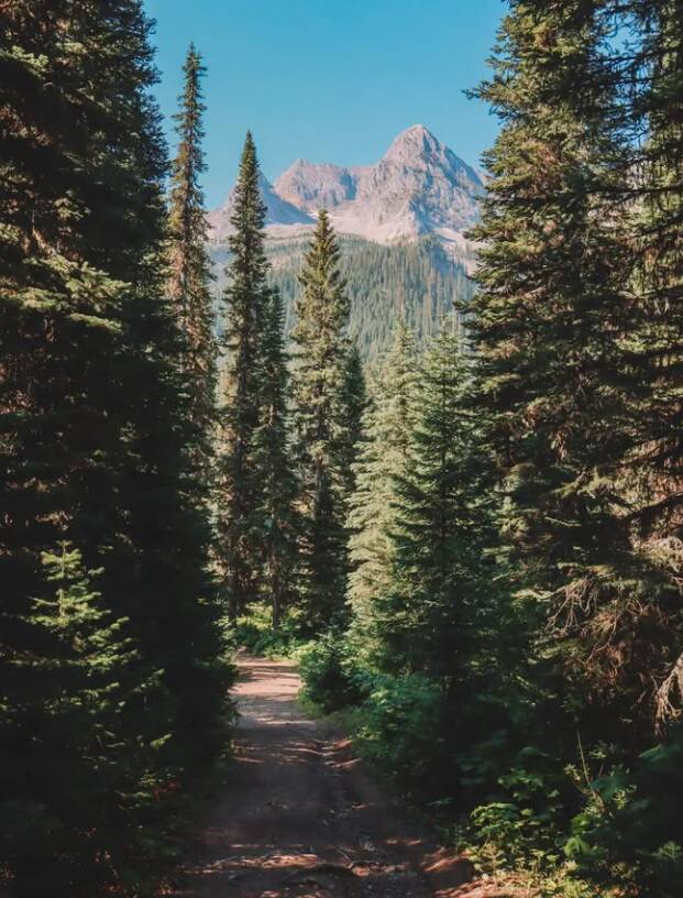 The trail is also full of yellow leaves and golden larches in October.